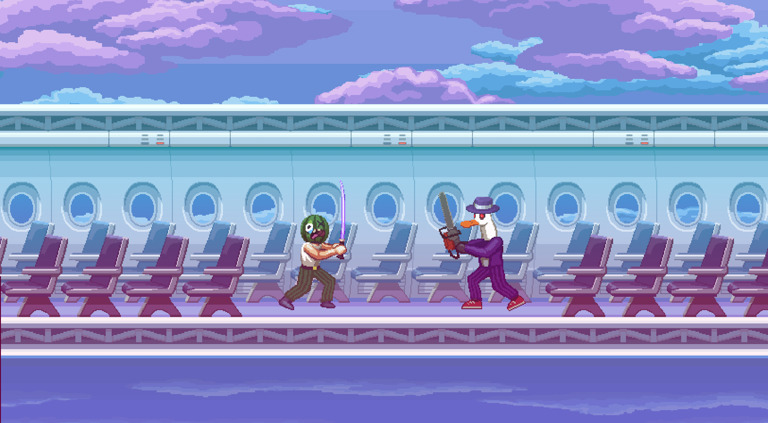 The rounds are very fast paced and fun, loads of weapons drop throughout rounds and you can use map elements to destroy the other player as well!